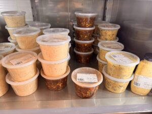We always keep a large selection of our catering menu in the store in various container sizes.